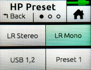 Returning to the Home screen, all of the channels and tracks visible on the meters should be grayed out except for the L and R channels, which should be red. Press the meter screen twice to return to the simplest meter, which just displays L and R.