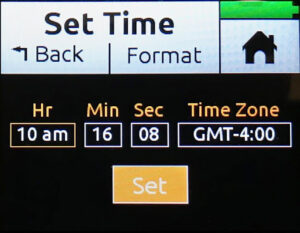 Once in the menu for Date or Time, use the headphone knob on the right side of the recorder to move between the different fields. Push the knob in to select the field you want to edit, and then turn the knob to adjust the value. Once done, tap on the “Set” button on the touch screen.