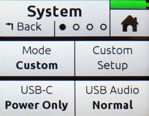 Back on the System sub-menu, click on the Bluetooth option so it shows Off. This may also save battery life. Finally, in the System sub-menu, change the USB-C option to Power Only.