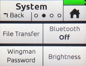 Once in the setup menus, a Menu button appears in the top, center section of the touchscreen. Touching this button will allow you to move between the three Menu screens (represented by the three dots below the word “Menu”).